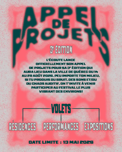 Le Festival/Rencontre L’Écoute lance son appel de projets pour sa 3e édition, qui se déroulera du 14 au 29 août 2026 à Québec.